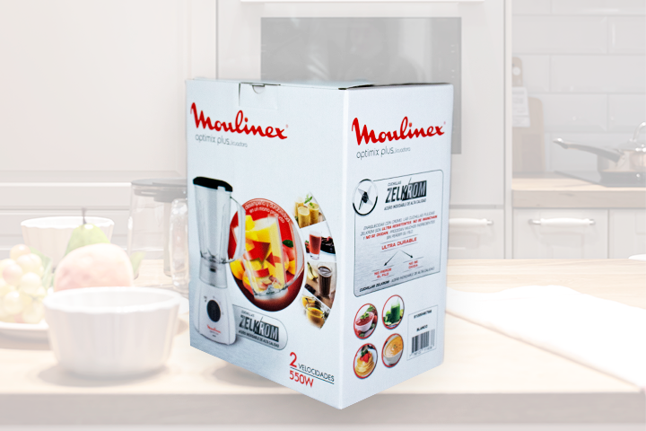 Sobre cartulina de alta calidad acopladas sobre microcorrugado de resistencia para soportar el peso. Terminación de barniz mate. Puede contener separadores para colocar partes del producto dentro.
